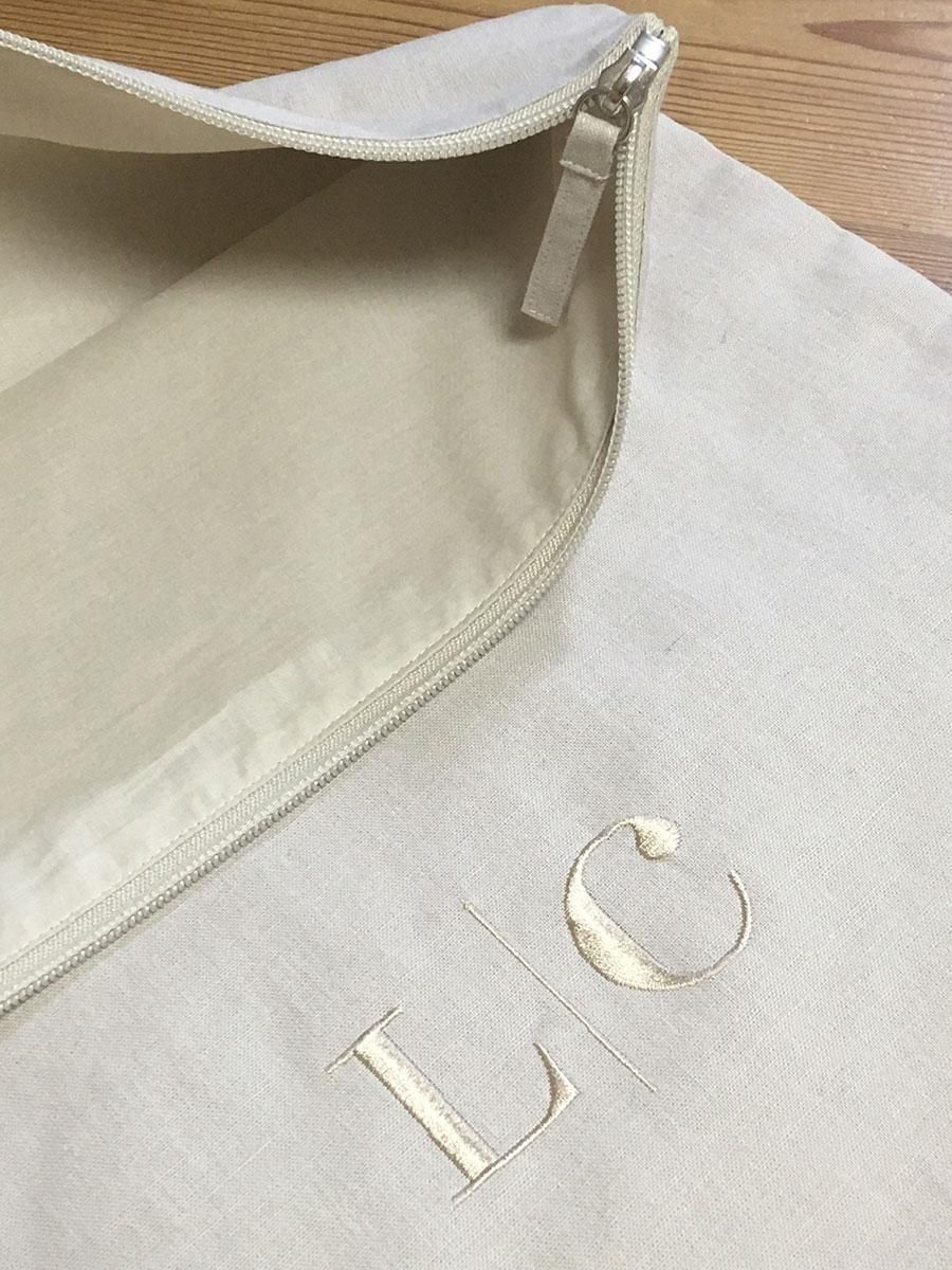 ストレージバッグは綿麻の布製で、裏地とファスナーも付いた丁寧な作りです。