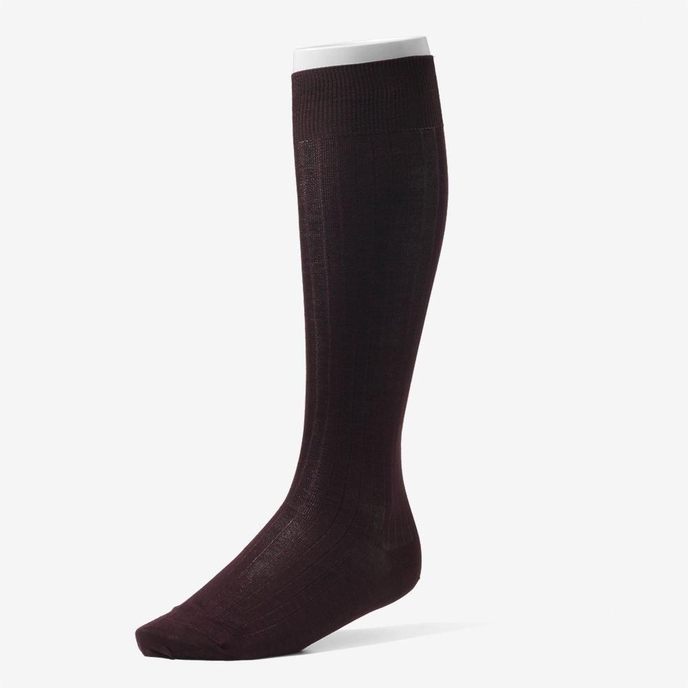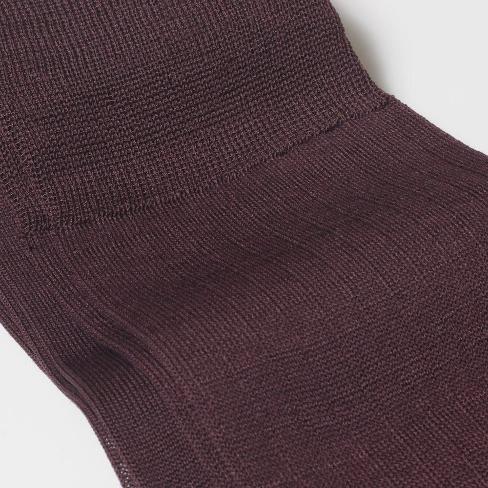 落ち着いた色調にひそむ個性。大人の品格が香るアクセントカラー。ネイビーやグレーの装いに、控えめに個性をを添え、革靴の色味とも美しく調和します。装いを柔らかく見せたいとき、ほんの少しの変化で品のある洒落感を演出できるのがボルドーの魅力。ドレスソックスに“らしさ”を添えたい方へおすすめです。