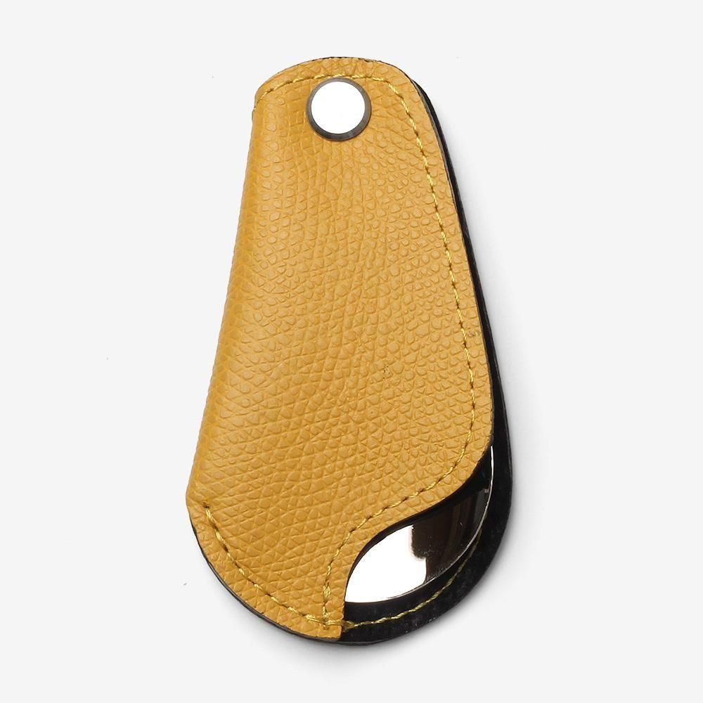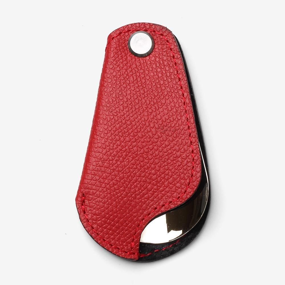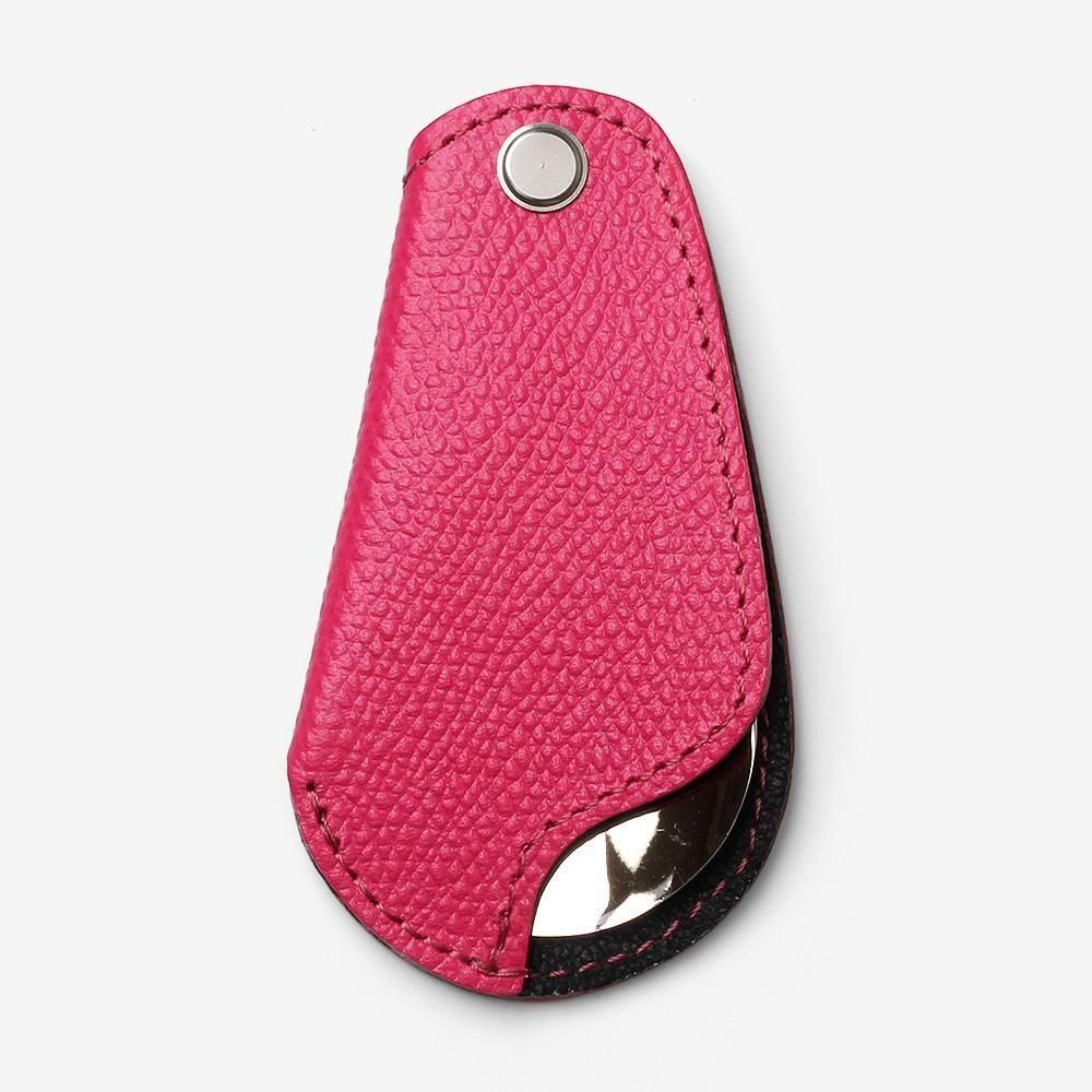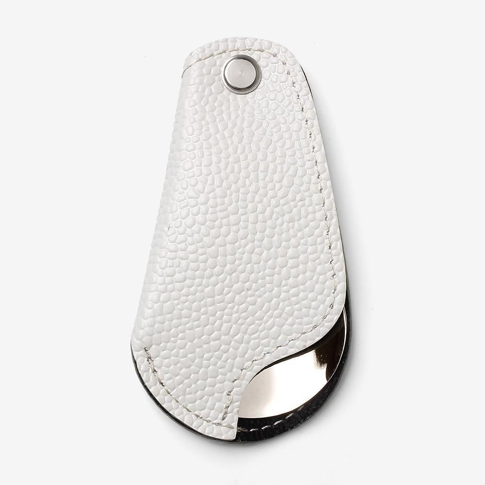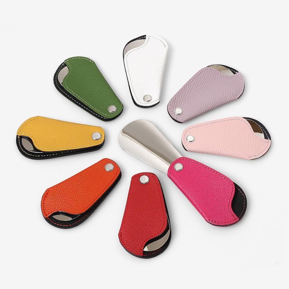 カバーは表に牛革、裏に豚革が使われています。こちらも薄く仕上げてあり、カラーバリエーションも豊富です。革小物のようにアクセサリー感覚で持ち運びできる靴べらをお探しの方におすすめです。