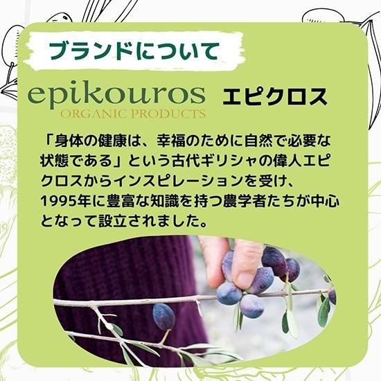 エピクロス社は、豊富な知識を持つ農学者達が中心となって1995年に設立されました。ギリシャのカラマタに自社工場を所有し100%オーガニックの商品を製造。良質なオリーブ製品をはじめ、多くのギリシャ産商品を21カ国へ輸出しています。